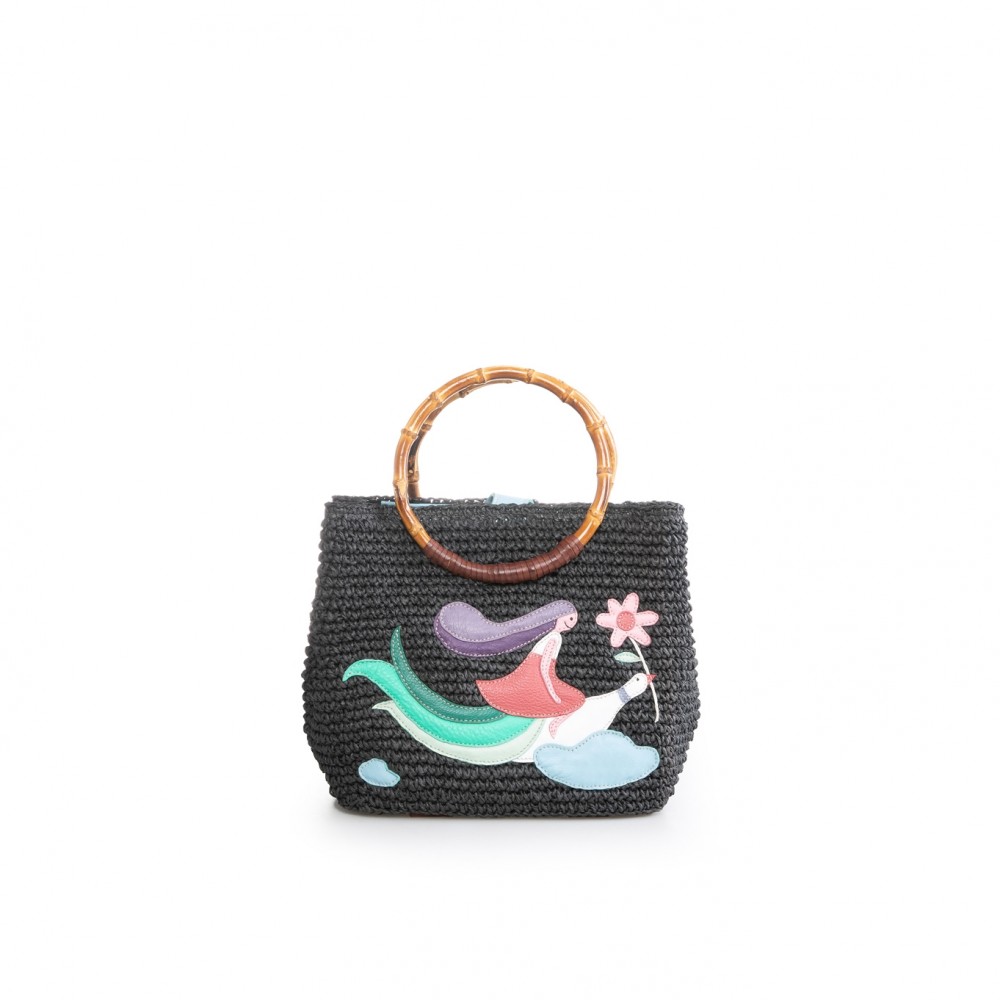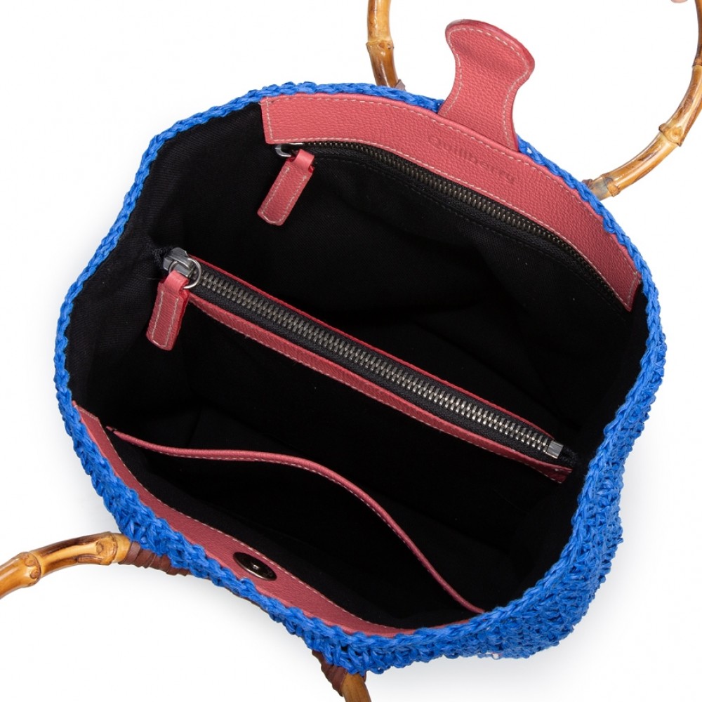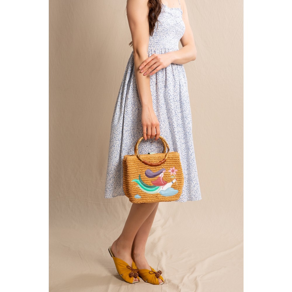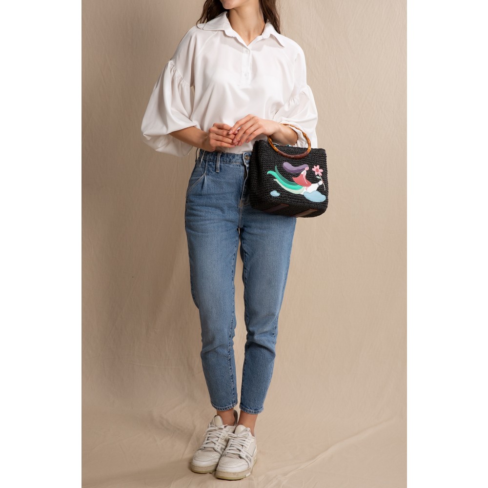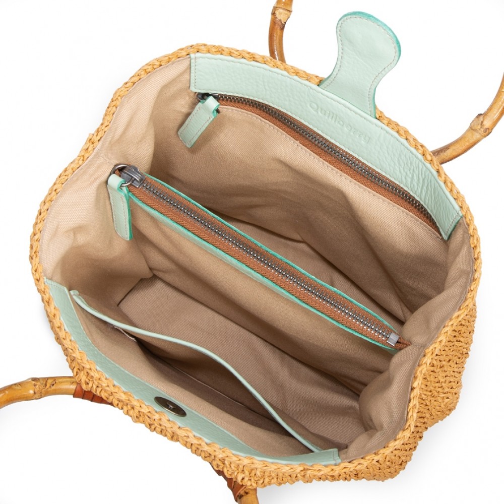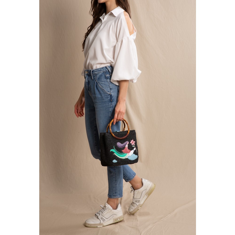 • ซับในด้วยผ้าแคนวาส หูกระเป๋าทำจากไม้ไผ่