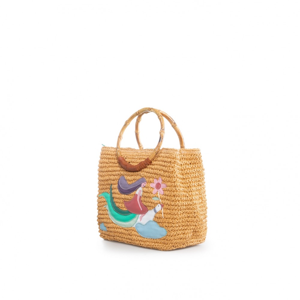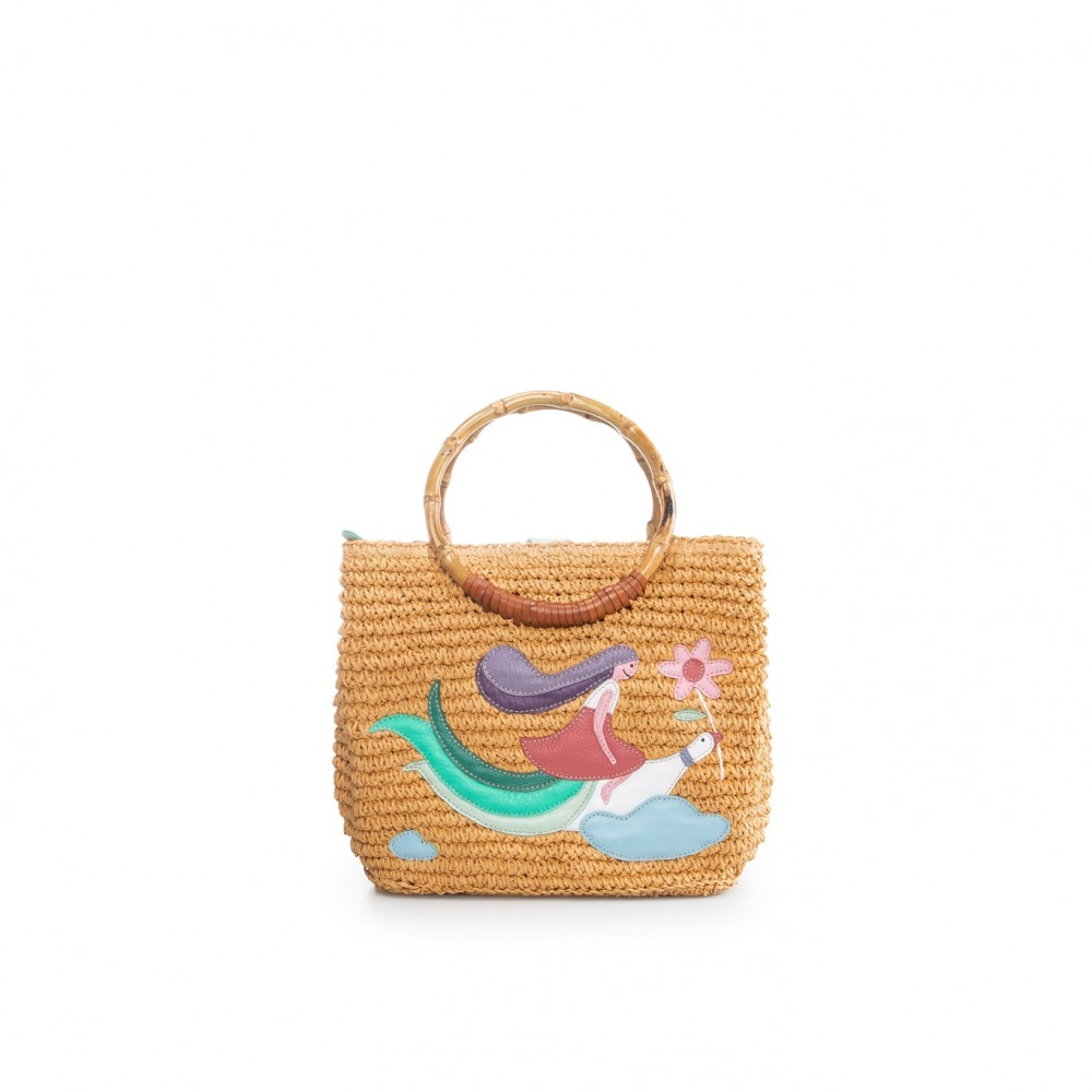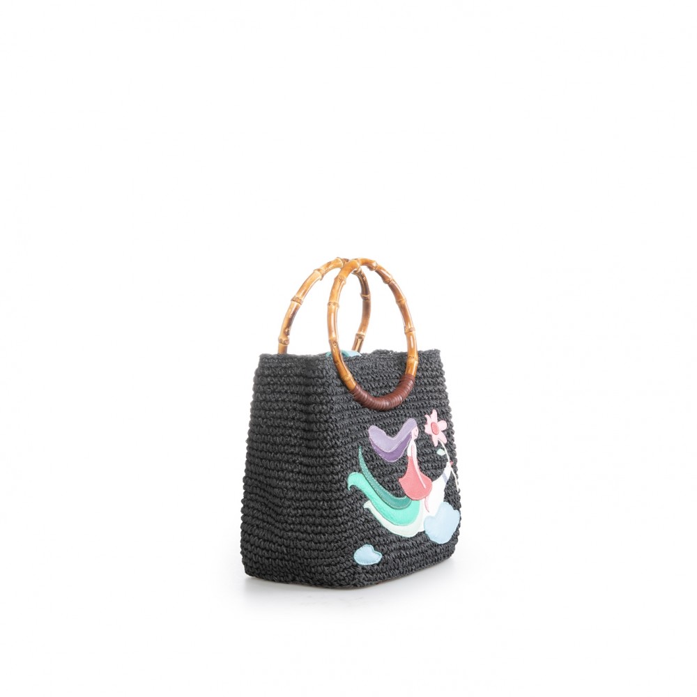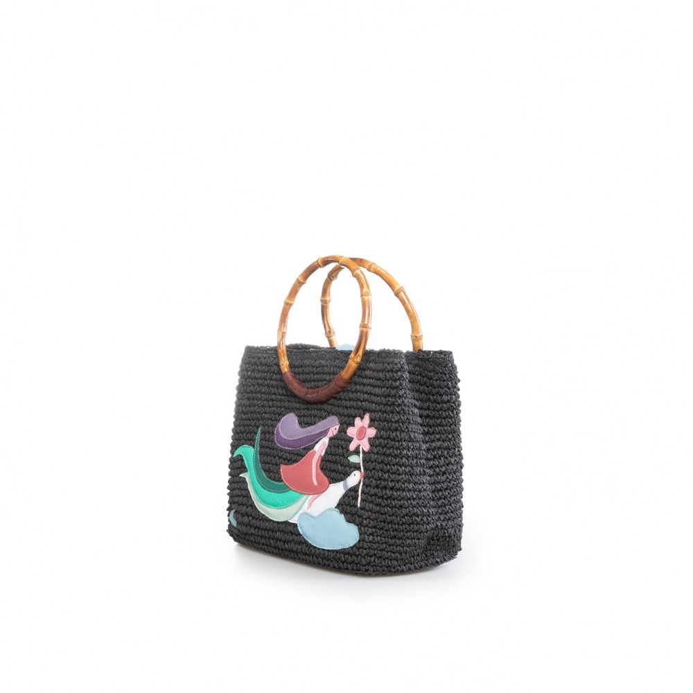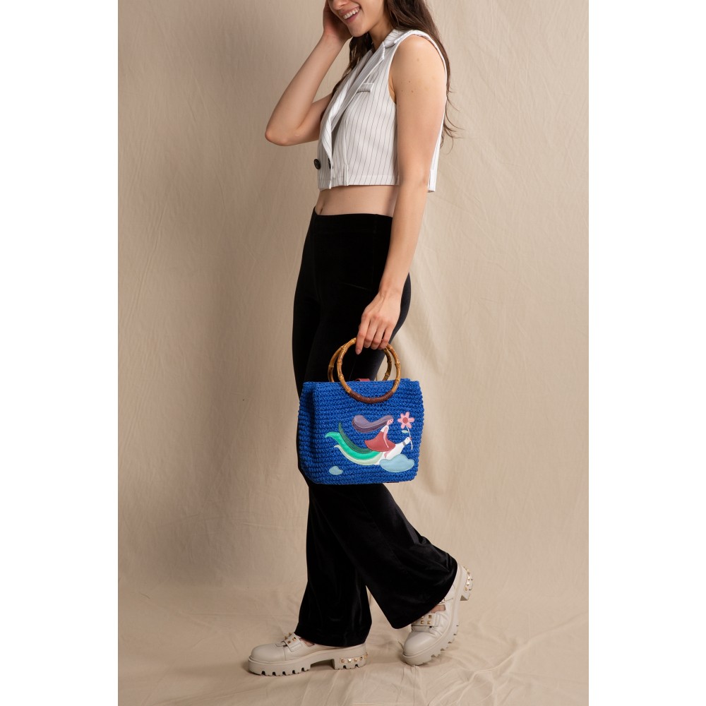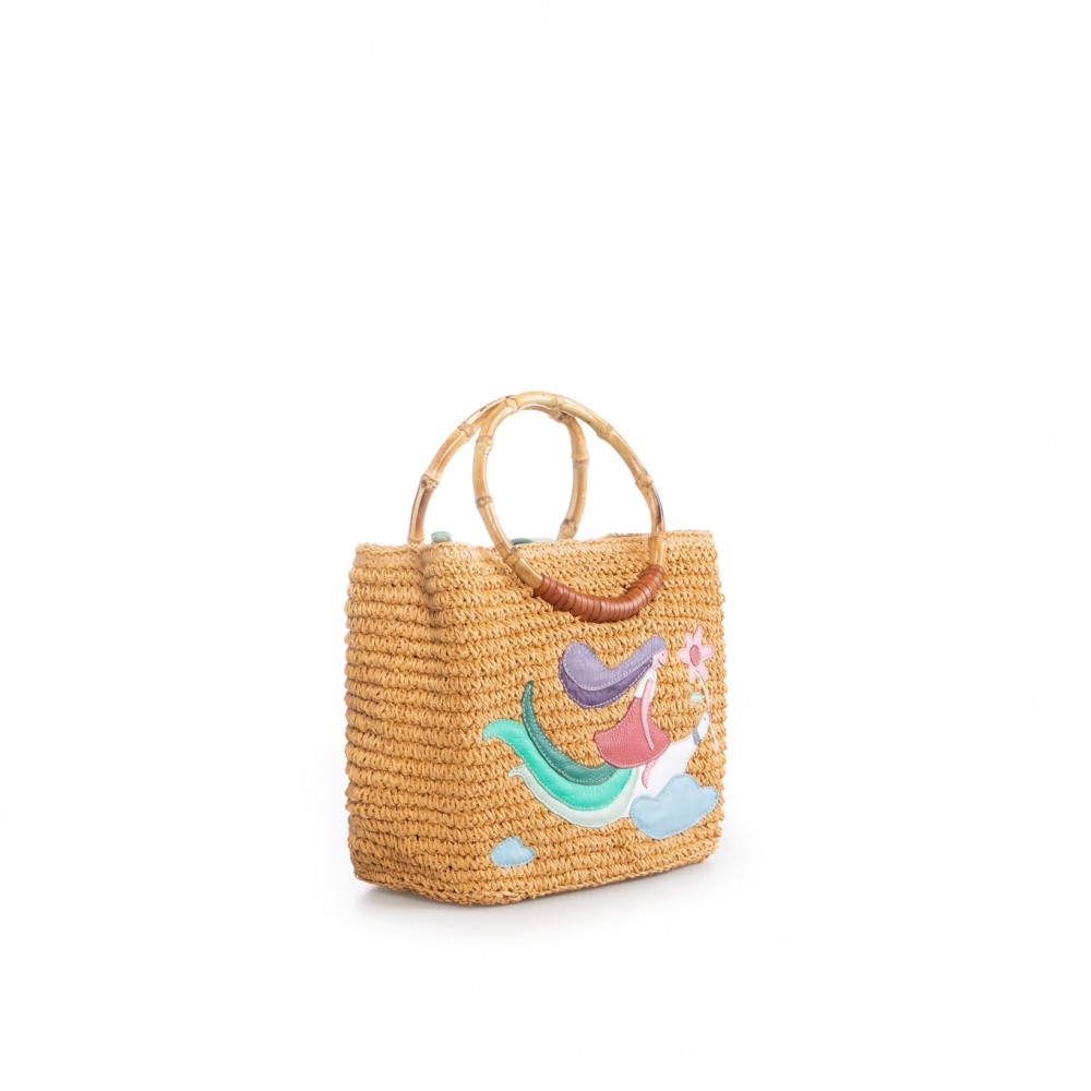 • ซับในด้วยผ้าแคนวาส หูกระเป๋าทำจากไม้ไผ่