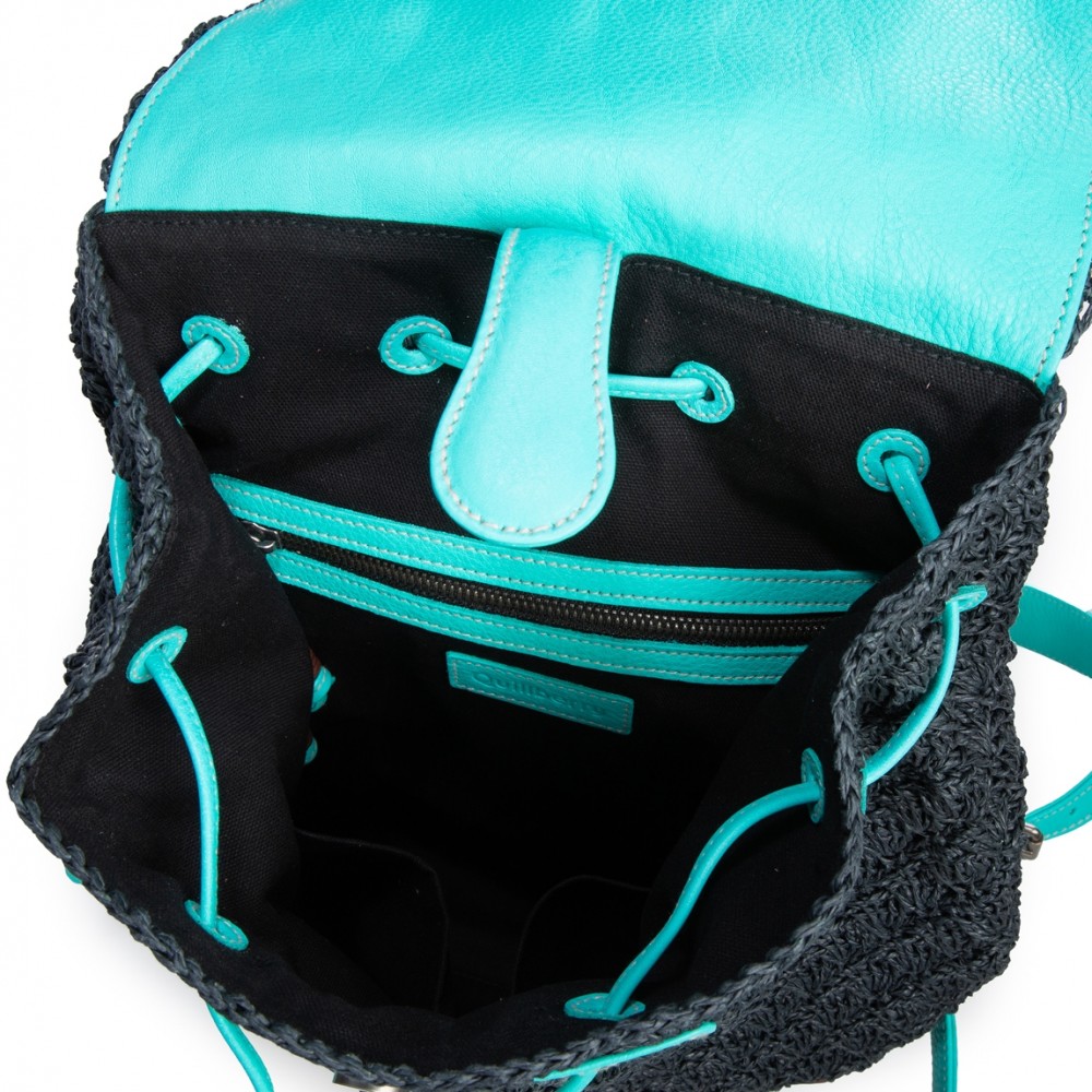 Featured front flap.Drawstring closure.